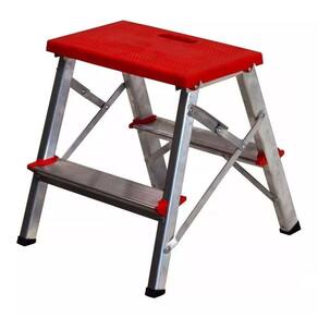 Banqueta 2 Degraus em Alumínio Detalhes em VermelhoDimensões- Altura útil: 42 cm;- Largura: 39 cm;- Peso do produto: Aproximadamente 1,7 kg;- Peso Máximo Suportado: 120 Kg; Composição:- Perfis extrudados de alumínio liga 6063/6005;- Acabamento em polipropileno;- Pés em Pvc;- Rebites em alumínio.ART FACTORY Escadas fabricadas com materiaisDe alta resistência, modelos versáteisPara serem utilizados na indústria,Comércio e residências.Prezamos pela qualidade no acabamentoE nos itens de segurança de todas as escadas por nós comercializadas.