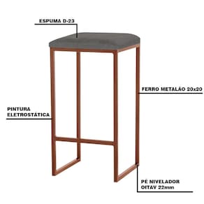 Banqueta Decorativa Billie Base Bronze Suede Cinza - Gran Belo é um modelo super prático e tradicional, podendo ser usado em qualquer ambiente, como cozinha, área gourmet ou até mesmo em restaurantes e bistrôs, dando um ar despojado para o espaço. Aproveite a oportunidade e garanta já a sua!