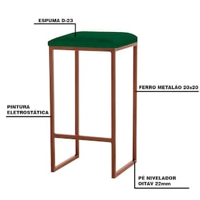 Banqueta Decorativa Billie Base Bronze Suede Verde - Gran Belo é um modelo super prático e tradicional, podendo ser usado em qualquer ambiente, como cozinha, área gourmet ou até mesmo em restaurantes e bistrôs, dando um ar despojado para o espaço. Aproveite a oportunidade e garanta já a sua!