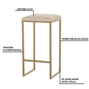 Banqueta Decorativa Billie Base Gold Veludo Bege - Gran Belo é um modelo super prático e tradicional, podendo ser usado em qualquer ambiente, como cozinha, área gourmet ou até mesmo em restaurantes e bistrôs, dando um ar despojado para o espaço. Aproveite a oportunidade e garanta já a sua!