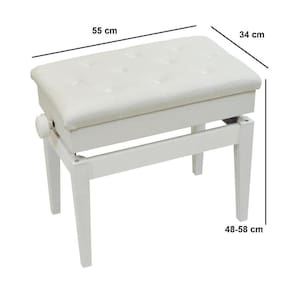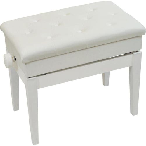 Banqueta para piano/teclado-assento acolchoado em couro sintético que não é apenas confortável, mas também extremamente elegante. O design vintage, irá complementar seus móveis e oferecerá uma sensação de luxo. Além disso, o banco possui uma estrutura de madeira sólida e pernas para uma ótima estabilidade e desempenho.- Altura do banco de piano é 100% ajustável, de modo que cada membro da sua família pode usá-lo facilmente. Tudo o que você precisa fazer é girar os botões simples e ajustar a altura de 48 cm para 58 cm.Além disso,o produto conta com um espaço de armazenamento conveniente e escondido, sob o assento, que pode guardar suas partituras ou livros-dimensões Altura:48-58 cm Assento:55-34 cm Profundidade interior:4,45 cm-capacidade de carga:149 kg-capacidade de pessoas:1-material:couro sintético e madeira maciça.-peso:11,79 kg-cor:branco-perfeito para escolas,igrejas,bares,orquestras,estúdios de gravação,bandas de música e concertos. Marca: Aj Som Acessórios Musicais
