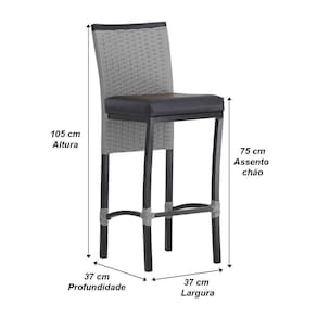 Dimensoes: Altura total: 105 cm Altura assento ao chao: 75 cm Largura: 37 cm Profundidade: 37 cm Suporta ate 170 kg
