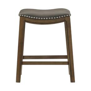 Banqueta Benjara Miel de 26 polegadas com altura de balcão, assento de couro sintético, madeira maciça, cinza e marrom