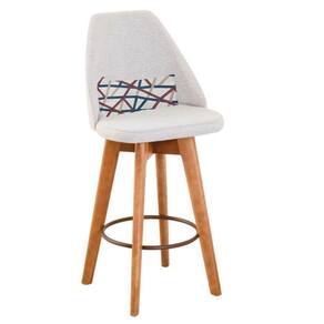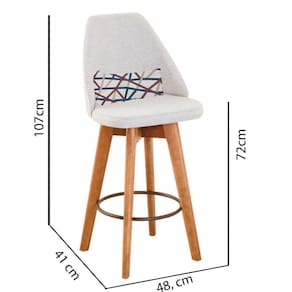 Banqueta Alta Maya Giratória Com Encosto Linho Bege Claro E Almofada Linhas Coloridas - Gat Magazine