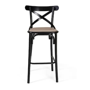 Banqueta Com Encosto Katrina Em Aço Preta - Cor: Marrom