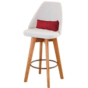 Banqueta Alta Maya Giratória Com Encosto Gourmet Linho Bege E Almofada Sintético Vermelho - Gat Magazine