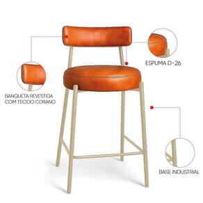 Banqueta Cozinha Alta Com Encosto Industrial Champanhe Londres Pu D03 - D'rossi Cor Nozes Renove sua cozinha, área gourmet ou ambiente comercial com a Banqueta Alta Londres em sintético PU. Com 95 cm de altura total e 75 cm do assento ao chão, possui a proporção perfeita para bancadas e ilhas altas, garantindo conforto e ergonomia em cada uso. A estrutura em aço carbono na cor champanhe combinada à madeira de reflorestamento assegura resistência e durabilidade, enquanto o acabamento em pintura epóxi protege e realça o visual industrial da peça. O assento e o encosto fixos, estofados em espuma D-26 de alta densidade, proporcionam maciez e sustentação ideais. O revestimento agrega sofisticação e é fácil de limpar, mantendo o aspecto elegante por muito mais tempo. Seu design industrial apresenta base metálica vazada, que traz leveza visual e robustez estrutural, além de apoio para os pés integrado e capacidade para até 120 kg com total . A Banqueta Londres é a escolha certa para quem busca elegância, praticidade e conforto em um só produto. Dimensões do Produto: