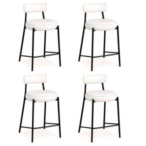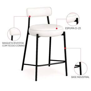 Banqueta Cozinha Alta Com Encosto Industrial Preto Kit 4 Londres Pu D03 - D'rossi Cor Branco Renove sua cozinha, área gourmet ou ambiente comercial com o kit 4 Banquetas Alta Londres em sintético PU. Com 95 cm de altura total e 75 cm do assento ao chão, possui a proporção perfeita para bancadas e ilhas altas, garantindo conforto e ergonomia em cada uso. A estrutura em aço carbono na cor preta combinada à madeira de reflorestamento assegura resistência e durabilidade, enquanto o acabamento em pintura epóxi protege e realça o visual industrial da peça. O assento e o encosto fixos, estofados em espuma D-26 de alta densidade, proporcionam maciez e sustentação ideais. O revestimento agrega sofisticação e é fácil de limpar, mantendo o aspecto elegante por muito mais tempo. Seu design industrial apresenta base metálica vazada, que traz leveza visual e robustez estrutural, além de apoio para os pés integrado e capacidade para até 120 kg com total segurança. A Banqueta Londres é a escolha certa para quem busca elegância, praticidade e conforto em um só produto. Dimensões do Produto: