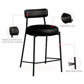 Renove sua cozinha, área gourmet ou ambiente comercial com a Banqueta Alta Londres em sintético PU. Com 95 cm de altura total e 75 cm do assento ao chão, possui a proporção perfeita para bancadas e ilhas altas, garantindo conforto e ergonomia em cada uso. A estrutura em aço carbono na cor preta combinada à madeira de reflorestamento assegura resistência e durabilidade, enquanto o acabamento em pintura epóxi protege e realça o visual industrial da peça. O assento e o encosto fixos, estofados em espuma D-26 de alta densidade, proporcionam maciez e sustentação ideais. O revestimento agrega sofisticação e é fácil de limpar, mantendo o aspecto elegante por muito mais tempo. Seu design industrial apresenta base metálica vazada, que traz leveza visual e robustez estrutural, além de apoio para os pés integrado e capacidade para até 120 kg com total segurança. A Banqueta Londres é a escolha certa para quem busca elegância, praticidade e conforto em um só produto.