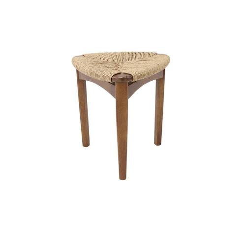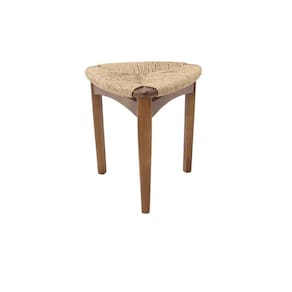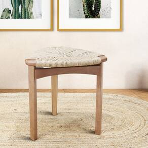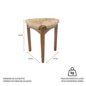 Banqueta Dália Baixa, produzida em madeira de Eucalipto na cor amêndoa e assento em corda de fibra de celulose.