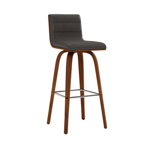 Armen Living Banqueta de bar moderna de meados do século 76 cm com altura de barra e acabamento de madeira de couro sintético, cinza/nogueira