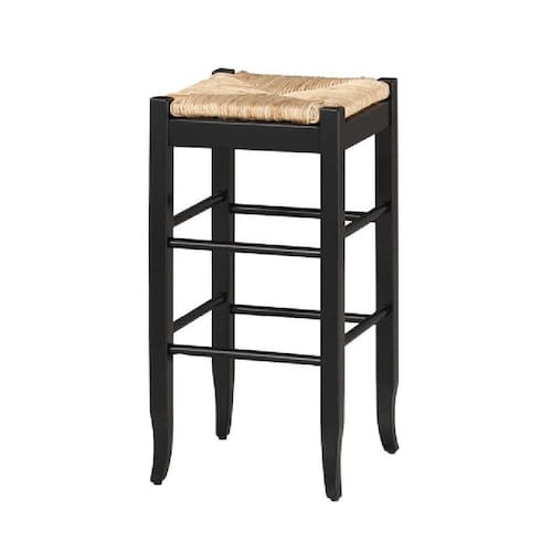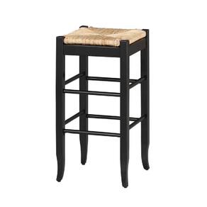 MadeiraBanqueta de bar com estrutura de madeira Benjara Rush com pernas de sabre, preta e bege