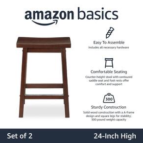 MadeiraAmazon Basics Banco de madeira maciça, assento de cozinha, 61 cm de altura, acabamento de nogueira - conjunto de 2