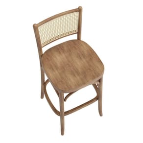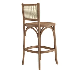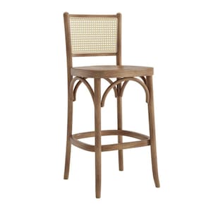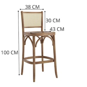 Banqueta De Madeira Cor Amêndoa Com Encosto Em Tela Rattan -