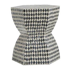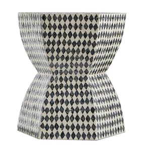 Banqueta de mesa hexagonal moderna Benjara de 17 polegadas, plataforma embutida em Capiz, branca e preta - 17 polegadas.