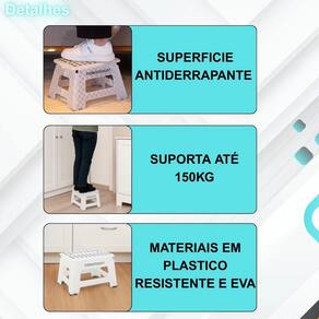 Banqueta De Plástico Dobrável 220mm Reforçada Com Alça 150KG