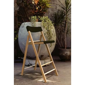 Banqueta Dobrável Alta com Encosto Tramontina Potenza Preto Madeira Tauari Natural