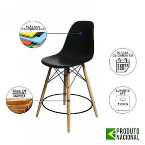 Banqueta eames eiffel de madeira assento pretoA banquetas eames eiffel será um complemento e tanto para a sua casa. Seja na sala de jantar, cozinha ou área gourmet, tornando momentos mais descontraídos e agradáveis. Com um design moderno que trará conforto e estilo para o ambiente. A banqueta possui uma curvatura ergonômica que se encaixa perfeitamente ao corpo.Tipo: banquetaModelo: bistrôCor: pretoCaracterísticasProduto nacionalBase: madeira maciçaAssento: plástico polipropilenoSuporta até 120kgGarantia: 90 diasDimensões do produtoAltura: 115cmAltura até o assento: 70cmLargura: 45cmComprimento: 45cmImagens meramente ilustrativas, podendo haver uma pequena variação na cor dependendo de cada tela ou monitor. Objetos da imagem ambientada não acompanham o produto.