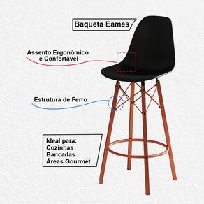 Características: Modelo: Banqueta Eames Material da Estrutura: Ferro Cor da Estrutura: Cobre Cor do Assento: Preto Design moderno e funcional