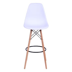 Moderna Suporta até 120Kg Combina com diversos ambientes Design único Encosto arredondado Feita em polipropileno Pés de madeira