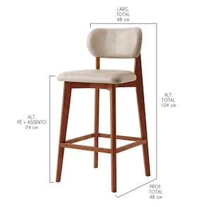 A Banqueta Laura une design atemporal, conforto e durabilidade em uma peça pensada para valorizar qualquer ambiente. Com estrutura robusta e acabamento refinado, elas trazem a elegância da madeira natural combinada à praticidade de um revestimento moderno e resistente. Versáteis e sofisticadas, essa banqueta é ideal para cozinhas, áreas gourmet ou espaços comerciais, harmonizando perfeitamente com estilos contemporâneo e moderno. Oferecem conforto no uso diário, sem abrir mão da estética. Sua estrutura é produzida em madeira maciça, garantindo alta resistência, estabilidade e longa vida útil. Com design ergonômico e linhas suaves, a banqueta proporciona conforto mesmo em usos prolongados.   CARACTERÍSTICAS TÉCNICAS: - Produzido em Madeira Maciça - Acabamento Envernizado Semi Brilho na Cor Pinhão - Assento Preenchido com Espuma D23 - Encosto Preenchido com Espuma D23 - Tecido Couríssimo de Alto Padrão - Suporta até 150 kg *PRODUTO ENTREGUE MONTADO   MEDIDAS: Altura Total: 104 cm Altura até o Assento: 74 cm Largura Total: 48 cm Largura do Assento: 50 cm Profundidade Total: 48 cm Profundidade do Assento: 44 cm   INFORMAÇÕES ADICIONAIS: - ATENÇÃO: Móvel produzido em madeira maciça natural podendo ocorrer mudança no tom da madeira conforme o produto; - Conferir se o produto está de acordo com o que comprou, produto danificado não será aceito troca; - As imagens ambientadas são meramente ilustrativas e podem apresentar itens que não compõe o produto. As cores do produto podem variar de acordo com o monitor, a iluminação do ambiente ou sua percepção visual; - Limpeza deve ser feita com pano macio e seco ou levemente umedecido com água e sabão neutro. Não devem ser utilizados produtos abrasivos; Garantia para defeitos de fabricação conforme Código de Defesa do Consumidor.