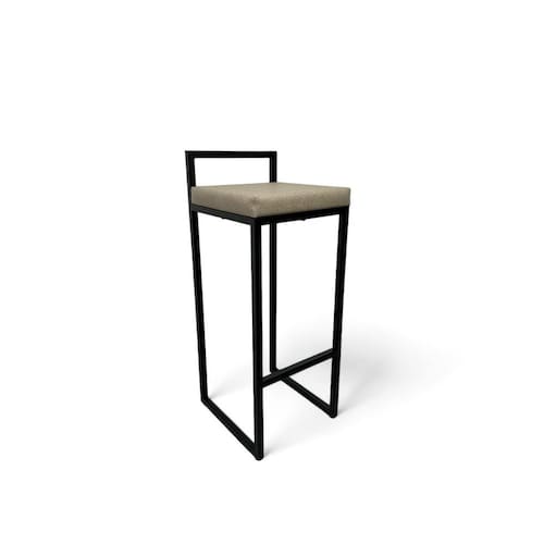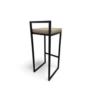 Banqueta Estofada Bege com Encosto Metalon Preto - Preto
