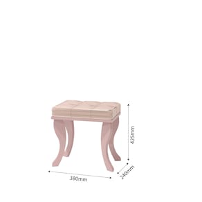 Essa banqueta estofada para penteadeira infantil é um assento projetado para crianças, com acolchoamento para maior conforto e revestimento na cor rose.