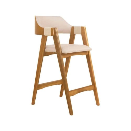 Banqueta Florença Base Amendoa Estofado Linho Areia -
