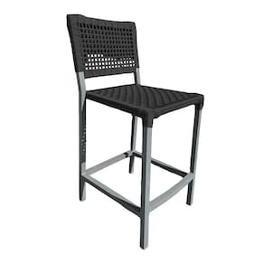 Banqueta França em Corda Náutica e Base em Alumínio Cinza para Área Gourmet Preta - Preto