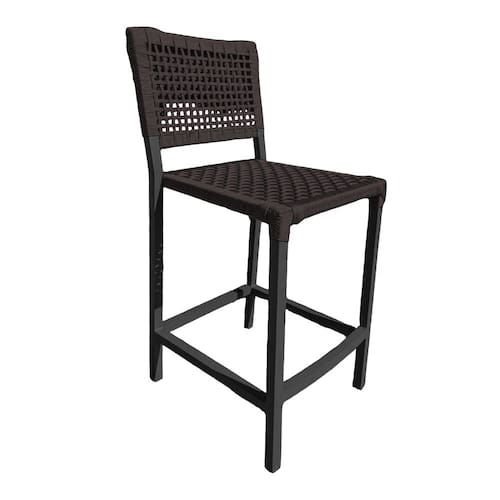 Banqueta França em Corda Náutica e Base em Alumínio Preta para Área Gourmet Marrom