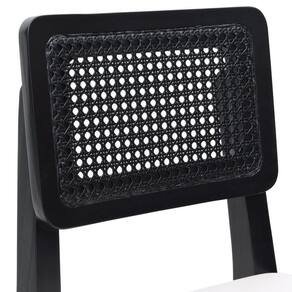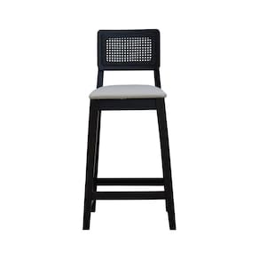 Banqueta Gabi Madeira Maciça Encosto C/ Telinha C/ 68cm Altura - Preto Assento Estofado Corano Bege