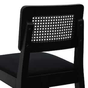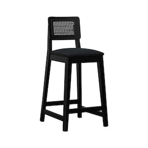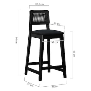 Banqueta Gabi Madeira Maciça Encosto C- Telinha C- 68cm Altura - Preto Assento Estofado Linho Preto Textura