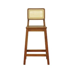 Banqueta Gabi Madeira Maciça Encosto Telinha C- 68cm Altura - Amêndoa Assento Amêndoa Madeira - Marrom