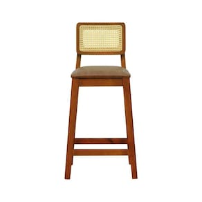 Banqueta Gabi Madeira Maciça Encosto Telinha C/ 68cm Altura - Amêndoa Assento Estofado Corano Marrom Mescla