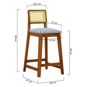 Banqueta Gabi Madeira Maciça Encosto Telinha C/ 68cm Altura - Amêndoa Assento Estofado Linho Cinza Mescla Impermeável