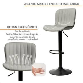 Banqueta Giratória Alta Cozinha Americana Encosto Bancada Cinza Claro - P040