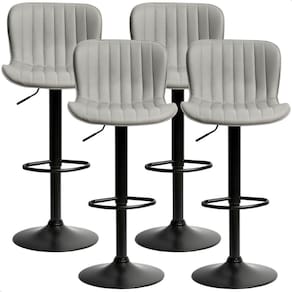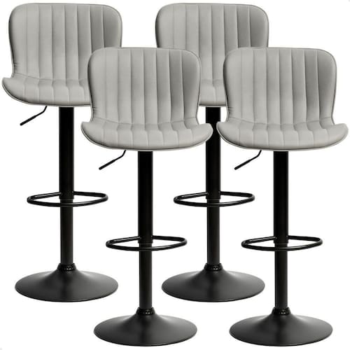 Especificações Técnicas: Modelo: Kit 04 Banquetas com Encosto Giratória Estrutura: Aço reforçado com acabamento preto fosco Revestimento: PU de alta qualidade, fácil de limpar Altura Mínima do Assento: 60 cm Altura Máxima do Assento: 80 cm Diâmetro da Base: 38,5 cm Rotação: 360 Ajuste de Altura: Pistão a gás Capacidade de Peso: Até 100 kg Cores Disponíveis: Preta, Marrom Café e Cinza Clara