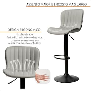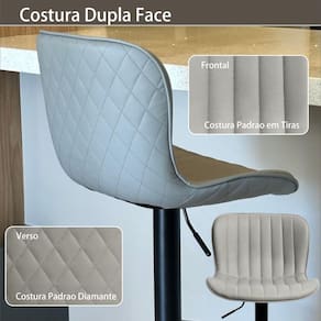 Principais Benefícios: - Design Sofisticado Costura dupla face que valoriza qualquer ambiente. - Conforto e Ergonomia Assento acolchoado e encosto alto para melhor apoio à coluna. - Rotação 360 Liberdade de movimento e praticidade no dia a dia. - Altura Ajustável Sistema de regulagem a gás para diferentes alturas de bancada. - Base Preta Fosca e Apoio para os Pés Estabilidade e conforto garantidos. - Revestimento Premium Fácil de limpar e altamente durável.