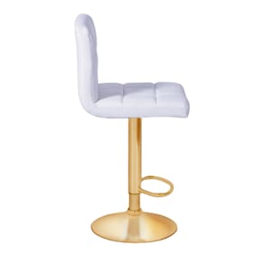 Banqueta Giratória Confort - Branca | Dourado Matte Descubra o equilíbrio perfeito entre estilo e versatilidade com nossas incríveis banquetas. Seja para criar um espaço contemporâneo e elegante em sua cozinha, bar ou área de entretenimento, ou adicionar um toque de sofisticação a um ambiente comercial, nossas banquetas são a escolha perfeita. Com designs modernos e materiais de alta qualidade, nossas banquetas oferecem uma combinação irresistível de beleza e funcionalidade. Cada peça é cuidadosamente projetada para proporcionar conforto e durabilidade, garantindo uma experiência agradável e duradoura. Material: Assento em PU com ajuste de altura, giratória e base em metal. O poliuretano (PU) é um material macio e maleável, ideal para um melhor caimento do estofado. Altamente resistente ao ressecamento, o PU mantém-se macio e agradável ao toque, proporcionando conforto duradouro. Altura: 113 cm