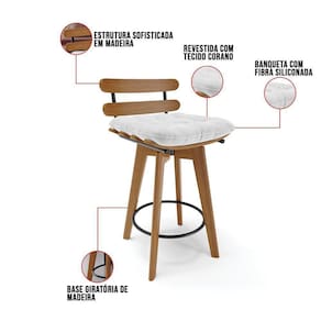 Banqueta Giratória Costela Corano Base Madeira Ma70 - D'rossi Cor Branco