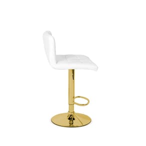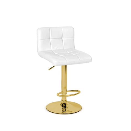 Banqueta Alta Estofada Gomos com Regulagem de Altura | Dourado Brilho