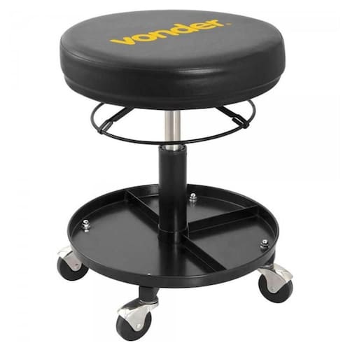 Banqueta Giratória Regulável para Mecânico com Bandeja Porta Ferramentas Preta Vonder.