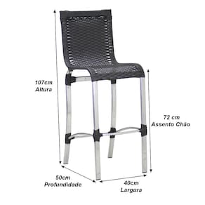 ESPECIFICACOES TECNICAS: - Altura total: 107 cm - Altura assento ao chao: 71cm - Largura: 39cm - Profundidade: 49,5 cm - Suporta ate 170 kg
