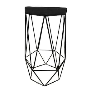 Banqueta Decorativa Hexagonal Aramado Preto Suede Preto