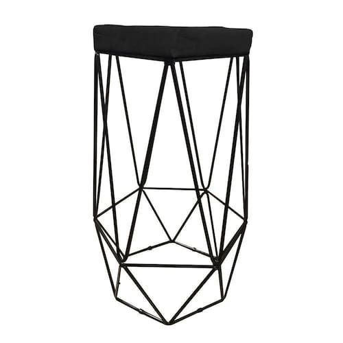 Banqueta Hexagonal Aramado Preto Suede Preto