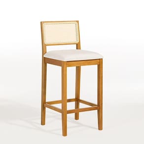Banqueta Ibiza Baixa Encosto Telinha Madeira Maciça Pinhão Linho Palha -