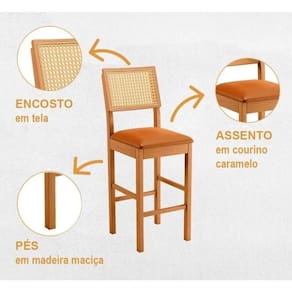 Banqueta Jade 03 Madeira Maciça Com Tela Tecido Jolie Marrom JCM Movelaria