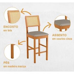 Banqueta Jade 03 Madeira Maciça Com Tela Tecido Jolie Marrom JCM Movelaria