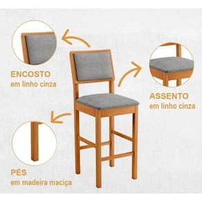 Banqueta Jade 04 Madeira Maciça JCM Movelaria - Jolie Cinza