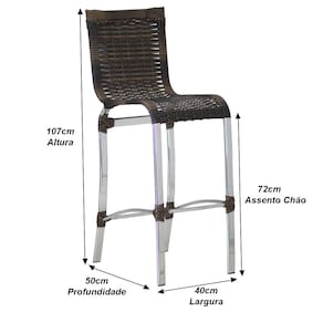 ESPECIFICAÇÕES TÉCNICAS: - Altura total: 107 cm - Altura assento ao chão: 71cm - Largura: 39cm - Profundidade: 49,5 cm - Suporta até 170 kg